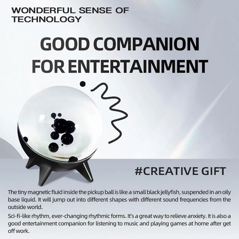 نمایشگر مایع مغناطیسی هوشمند با قابلیت واکنش به صدا و موسیقی، مجهز به سه حالت مختلف عملکرد، باتری قابل شارژ با دوام 6-8 ساعته، مناسب برای دکوراسیون دفتر کار و منزل میباشد