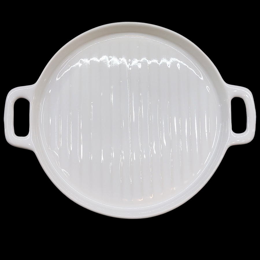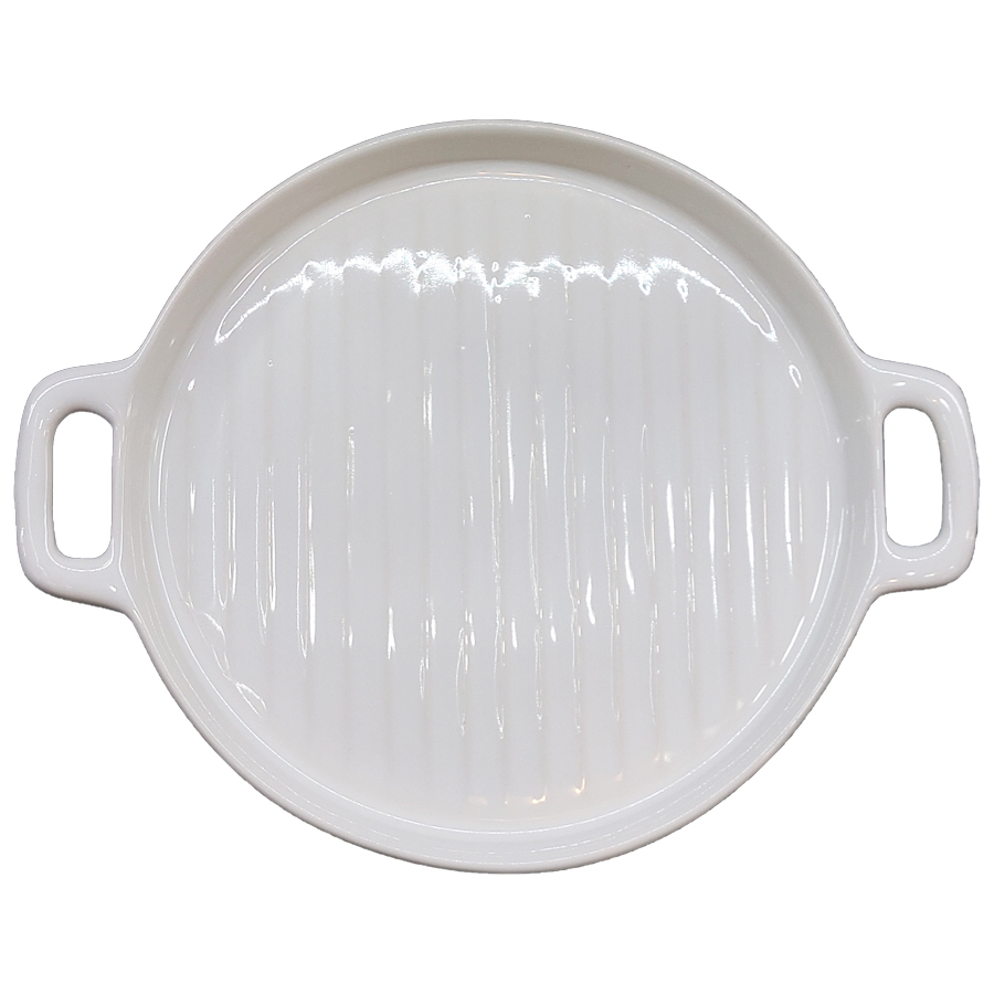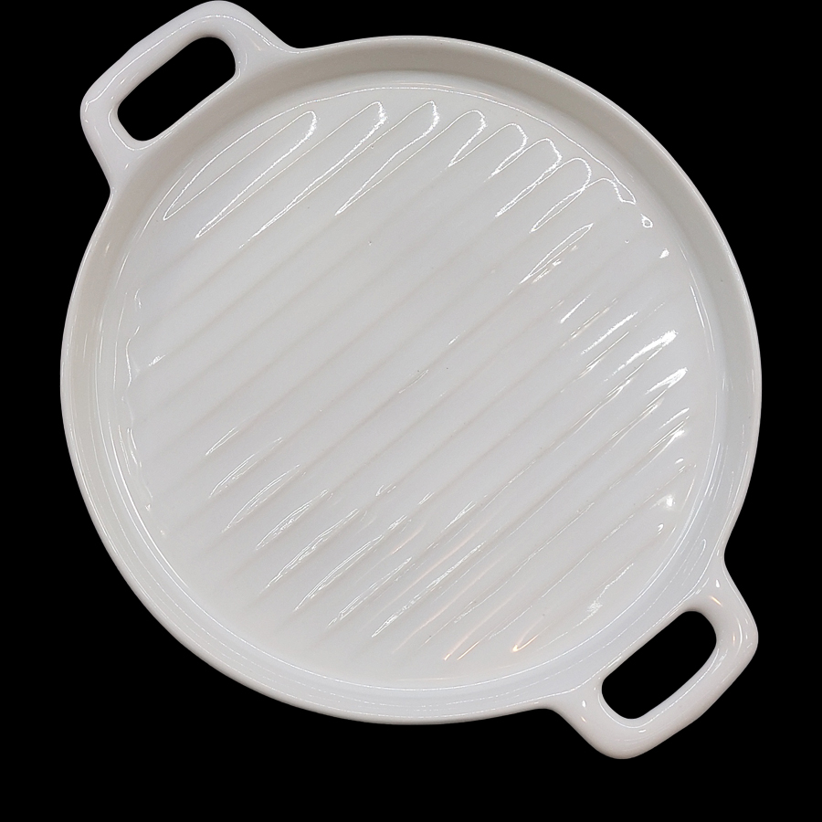 تابه سرامیکی مدل گرد دو دسته از جنس سرامیک ساخته شده و دو بار پخت میباشد از رنگ لعاب خوراکی رنگین شده و قابلیت استفاده در ماکروویو و فر و ماشین ظرفشویی را دارد.برای سروانواع محصولات غذایی مصرف میشود . محصول پیش روی شما از سرامیک درجه 1 ساخته شده است.