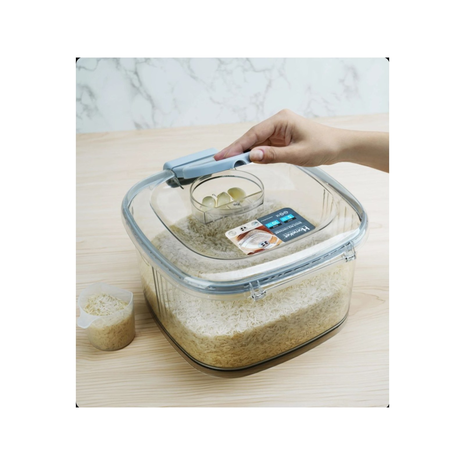 این محصول معمولاً دارای خروجی آسانریز یا پیمانهبردار است که کار استفاده روزمره را بسیار راحت میکند. ظرفیت ۱۰ کیلویی آن باعث میشود برای خانوادههای کمجمعیت و متوسط بهترین گزینه باشد. ظاهر شیک و طراحی ارگونومیک آن نیز باعث میشود روی کابینت یا داخل کابینت بهراحتی قابل استفاده و هماهنگ با دکور آشپزخانه باشد.