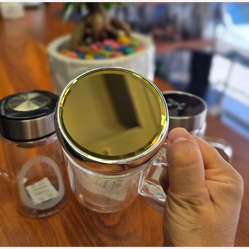 اگر به دنبال لیوان دمنوش شیشهای شیک و بادوام هستید، مدل درب آینهای انتخابی ایدهآل است.