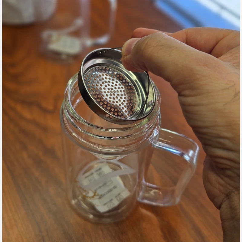 فیلتر استیل ضد زنگ درون لیوان قرار دارد و چای یا گیاهان خشک را بهصورت یکدست دم میکند، بدون آنکه ذرات ریز وارد نوشیدنی شوند.