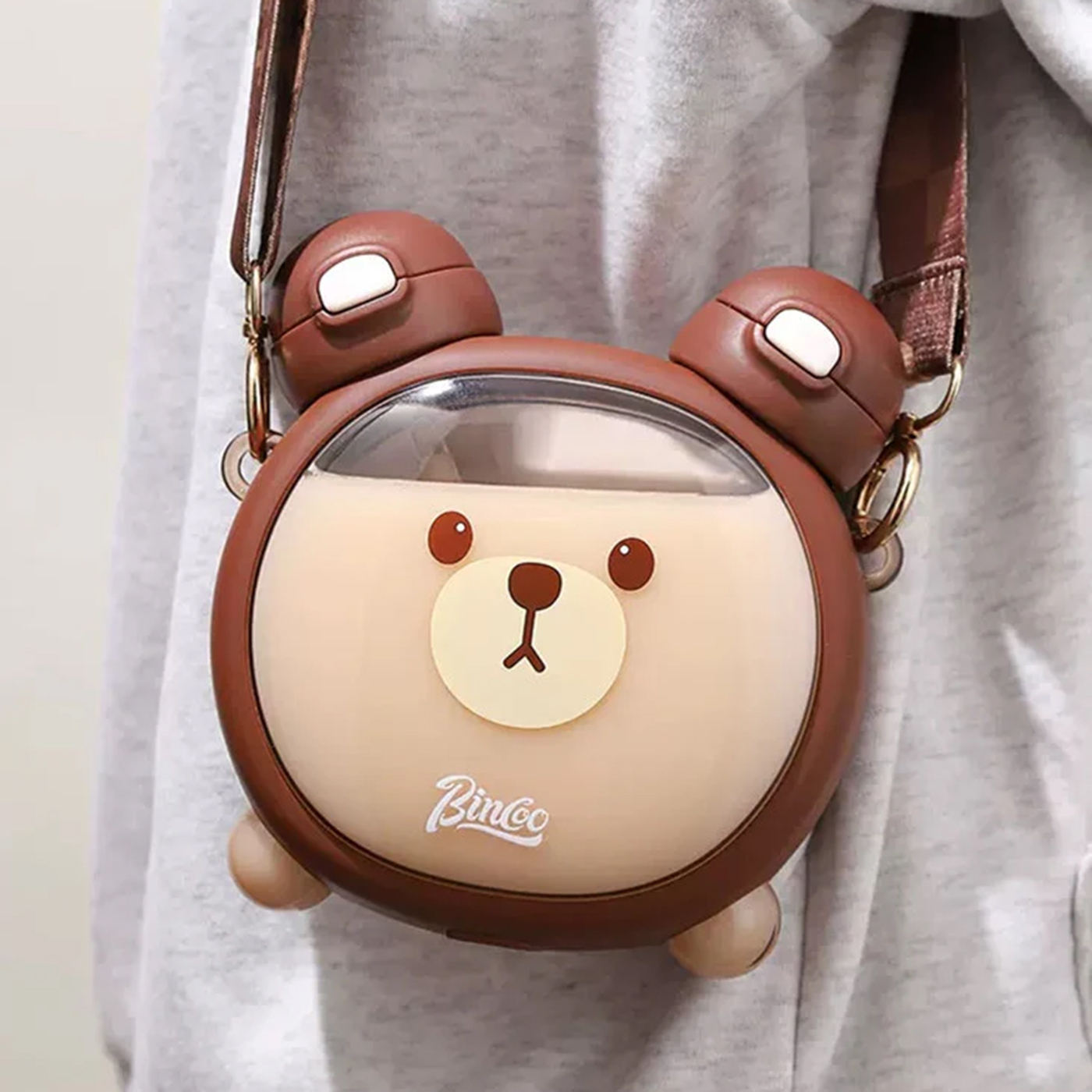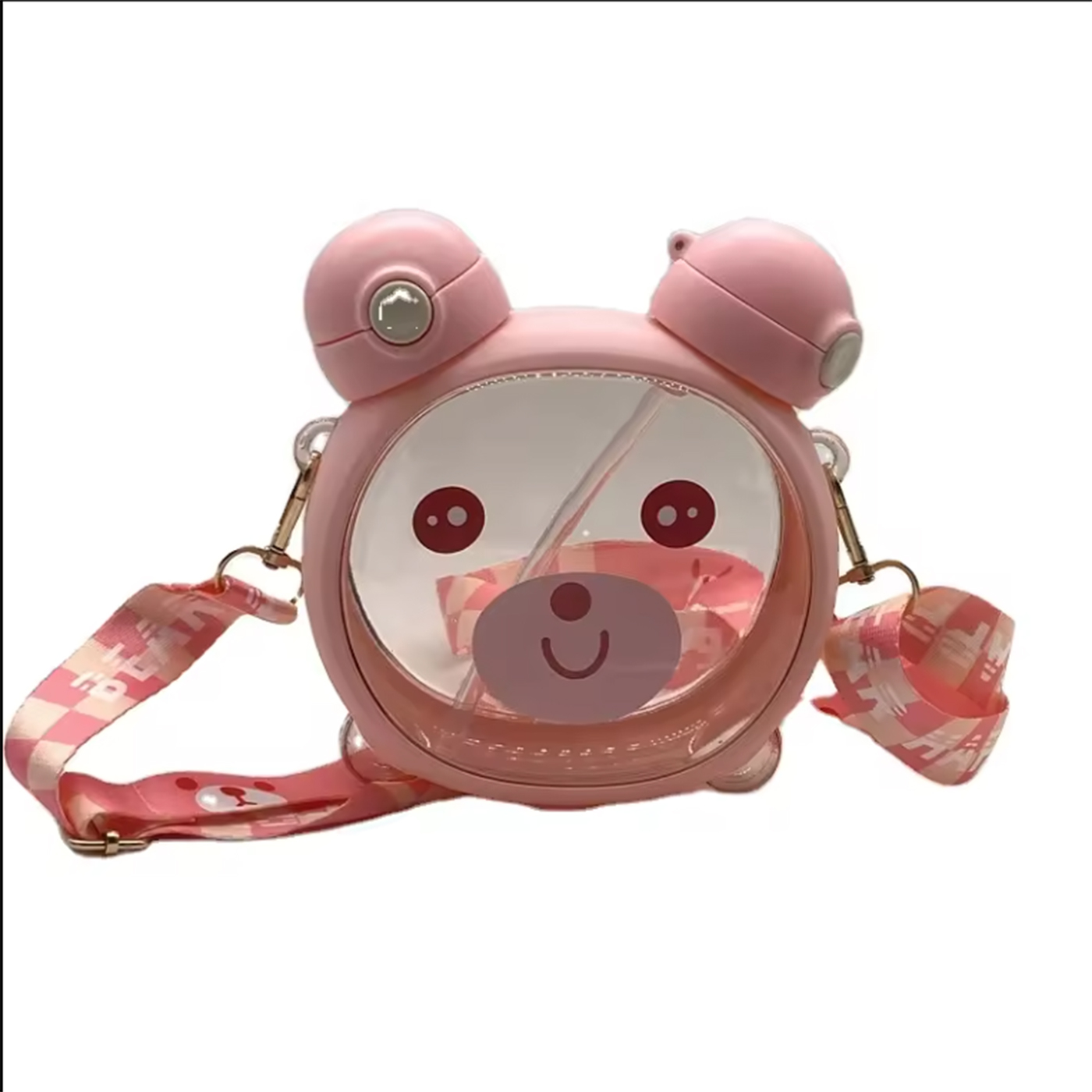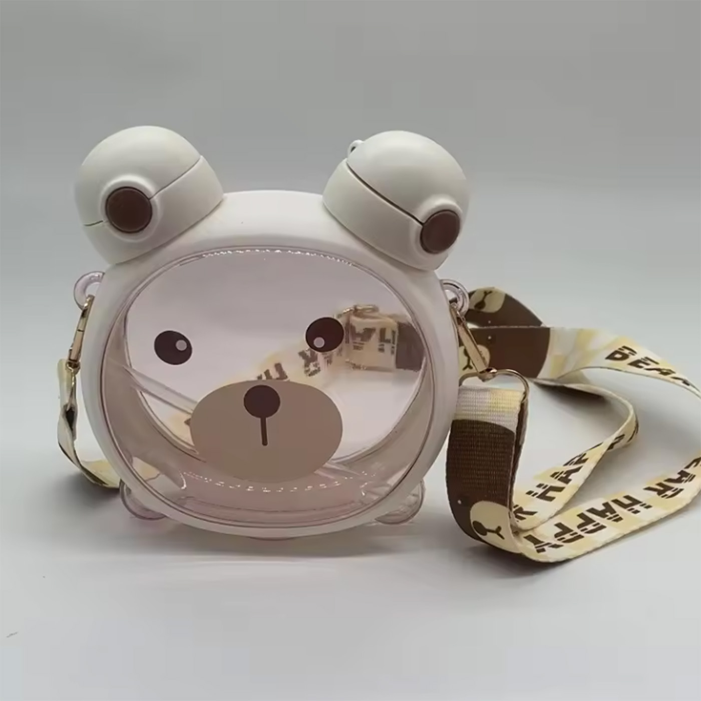 این قمقمه خرسی بسیار باکیفیت و خوشگل مناسب کودکان و نوجوانان است وگزینه بسیار مناسب برای هدیه دادن هستش. دارای دوسری که در گوش های اون قرار دارد یک سری آن نی دار هستش. همراه قمقمه بند محکم و زیبا و دو استیکر صورت خرس ارسال میشود که کودک به دلخواه میتواند روی قمقمه بچسباند
