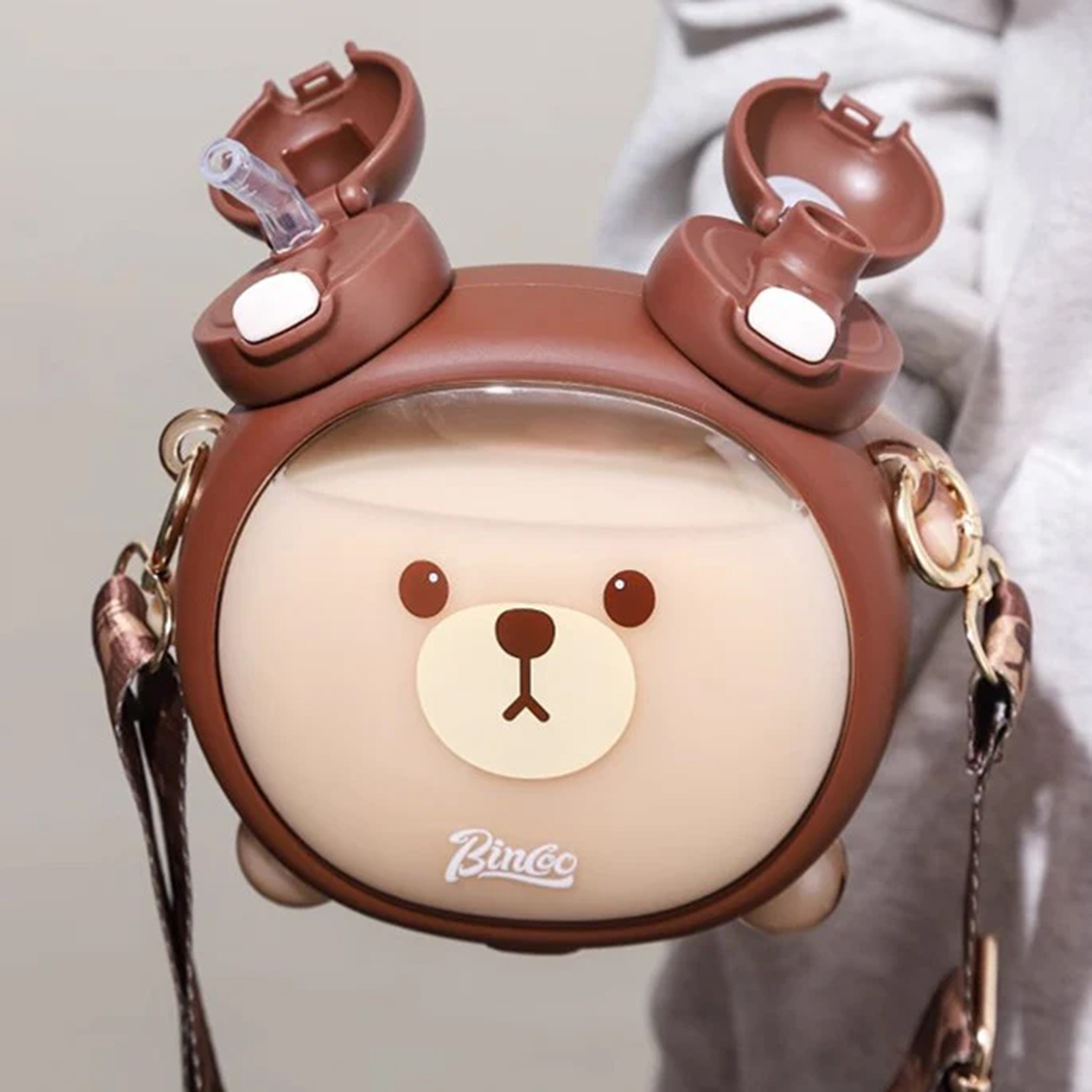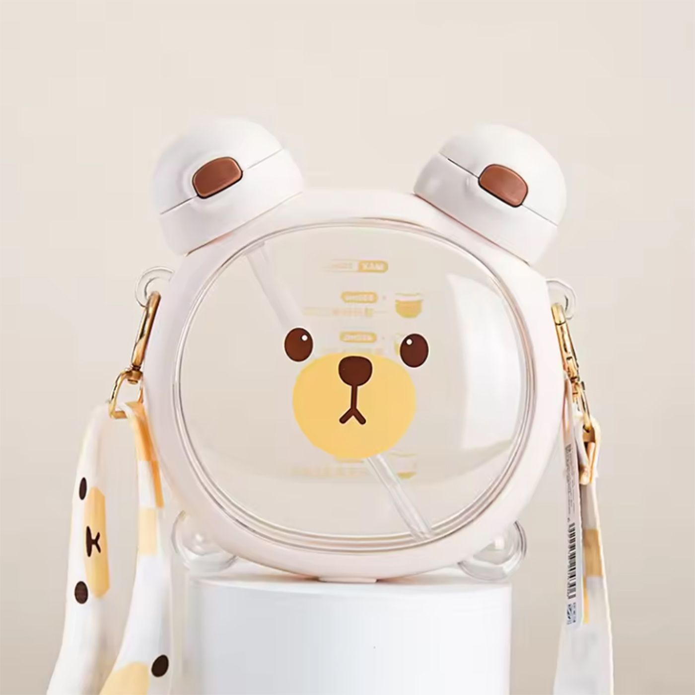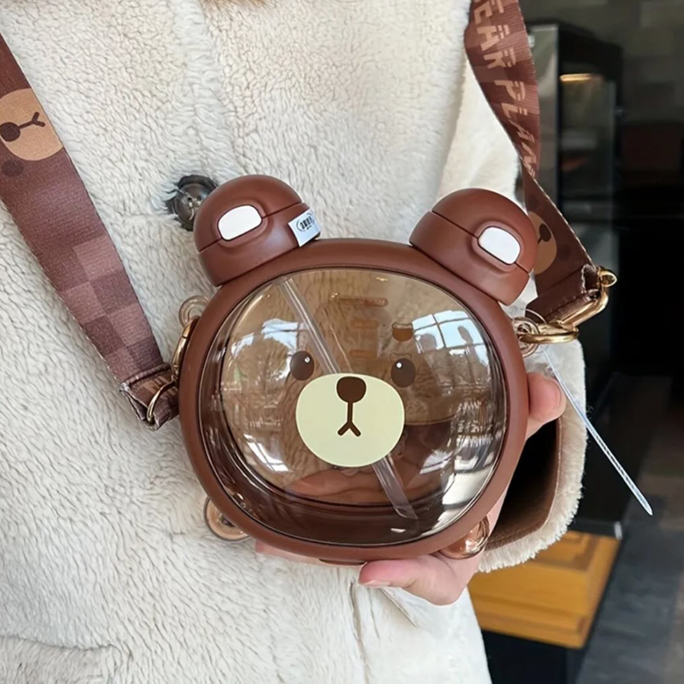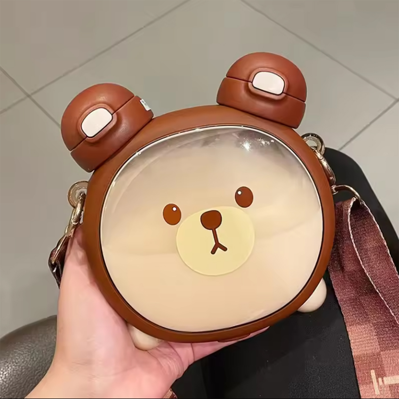این قمقمه خرسی بسیار باکیفیت و خوشگل مناسب کودکان و نوجوانان است وگزینه بسیار مناسب برای هدیه دادن هستش. دارای دوسری که در گوش های اون قرار دارد یک سری آن نی دار هستش. همراه قمقمه بند محکم و زیبا و دو استیکر صورت خرس ارسال میشود که کودک به دلخواه میتواند روی قمقمه بچسباند