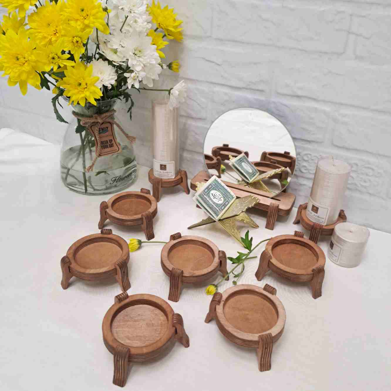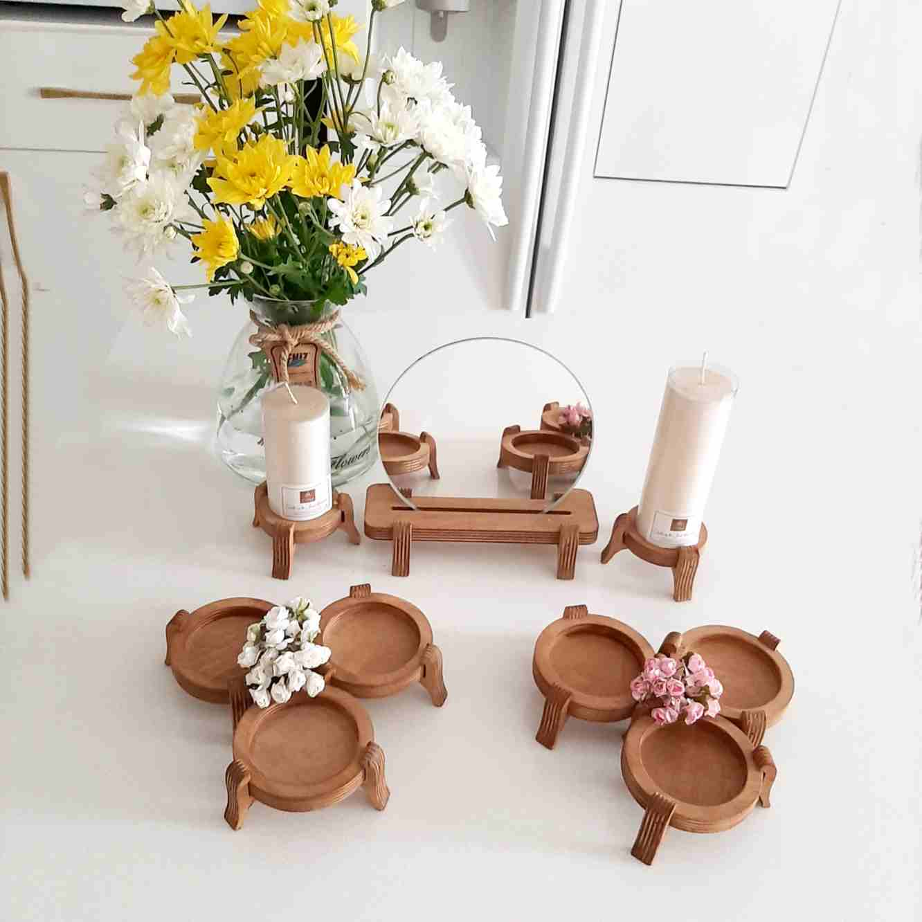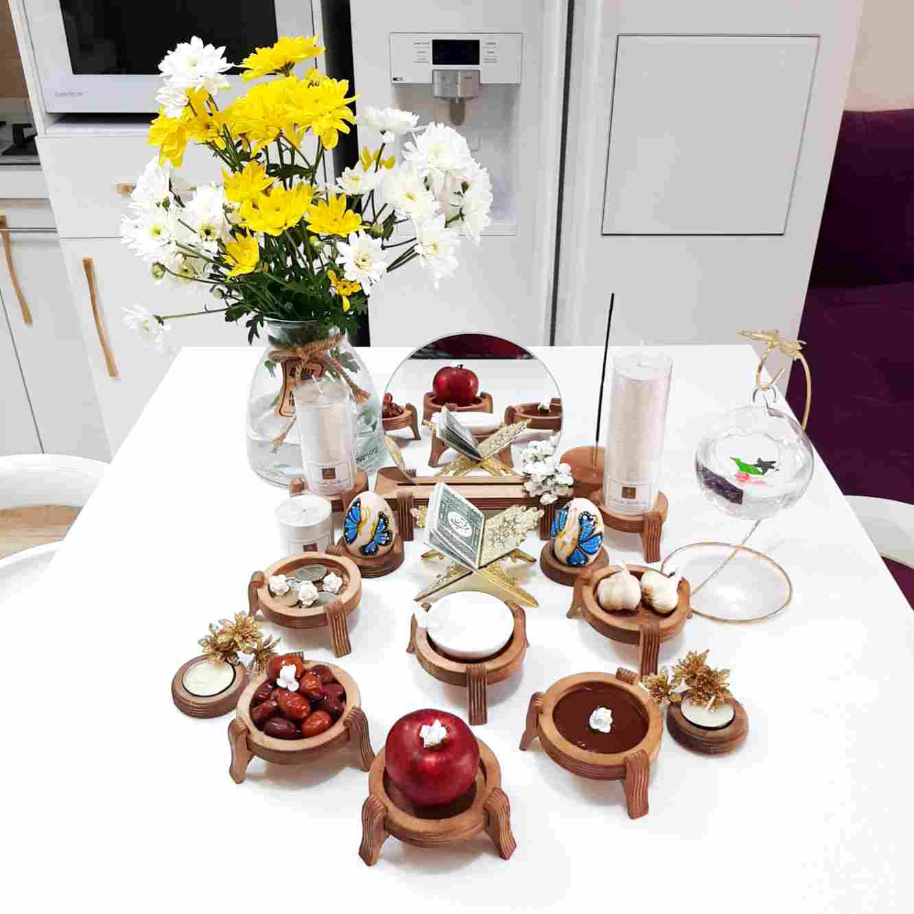 ست زیبا و شکیل آیینه و شمعدان بهمراه هفت سین از چوب فوقالعاده باکیفیت، بادوام و ضدآب پلایوود روس تهیه شده که براحتی قابل شستشو و تمیز کردن میباشد، دارای آیینه بهمراه دو عدد شمعدان پایه دار و ۶ عدد ظرف پایهدار هفت سین بوده و ابعاد آیینه کار ۰.۵×۱۶.۵×۱۸ و پایه آیینه ۵×۷×۲۰ و ظروف پایهدار مخصوص چیدن هفت سین با ابعاد ۵×۱۰×۱۰ و شمعدانها با ابعاد ۵×۸×۸ میباشند.