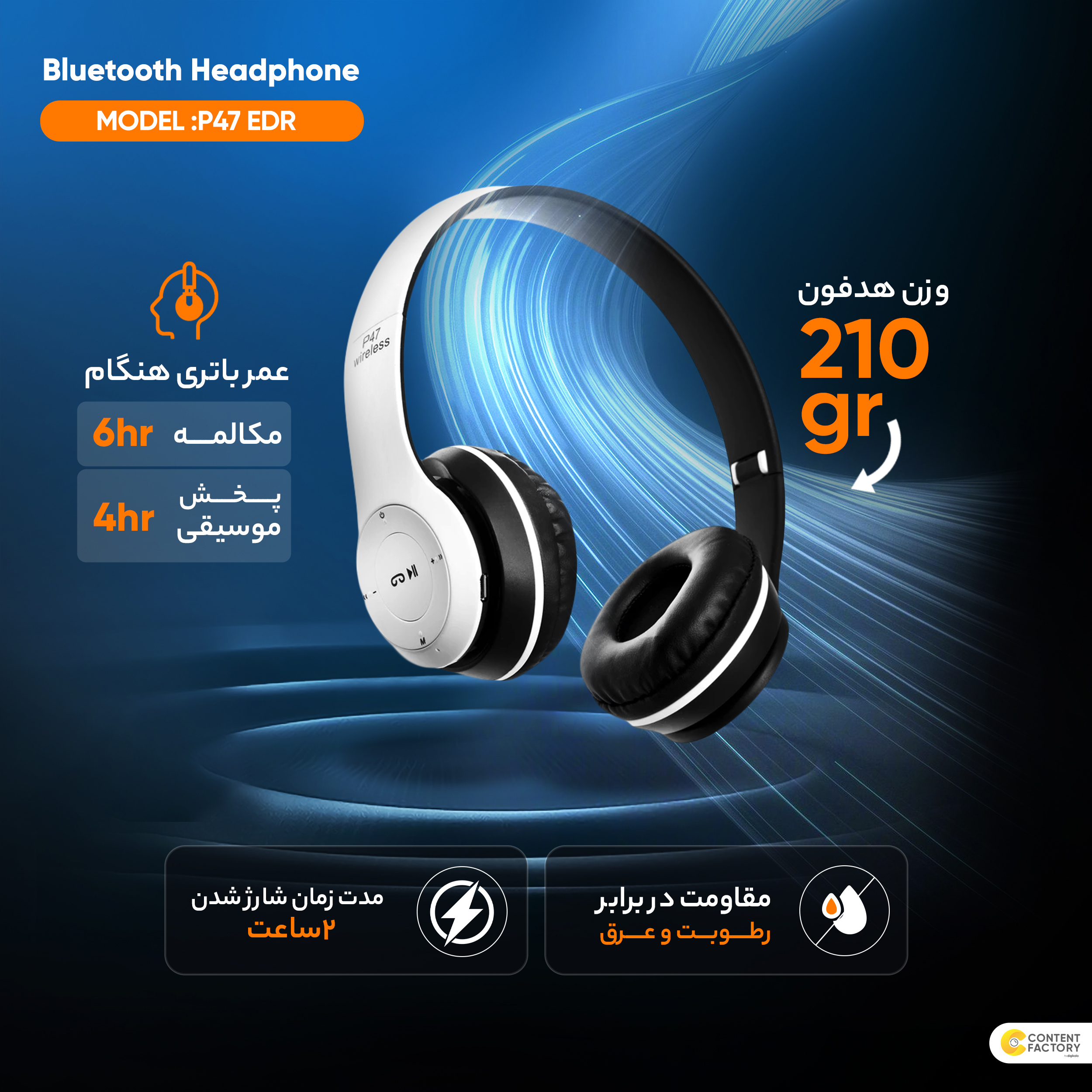 هدفون بلوتوثی مدل P47 EDR یکی از هدفونهای پرطرفدار و اقتصادی است که طراحی ساده و در عین حال کاربردی دارد. این مدل به لطف اتصال بیسیم از طریق بلوتوث و کیفیت صدای استریو، انتخابی مناسب برای افرادی است که به دنبال یک هدفون روزمره با امکانات کامل و قیمت مناسب هستند. وزن سبک و طراحی ارگونومیک آن باعث میشود کاربر بتواند مدت طولانی بدون خستگی از این هدفون استفاده کند.