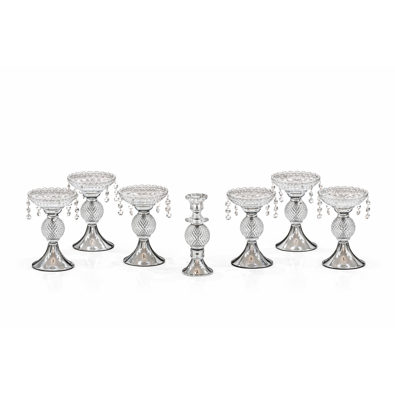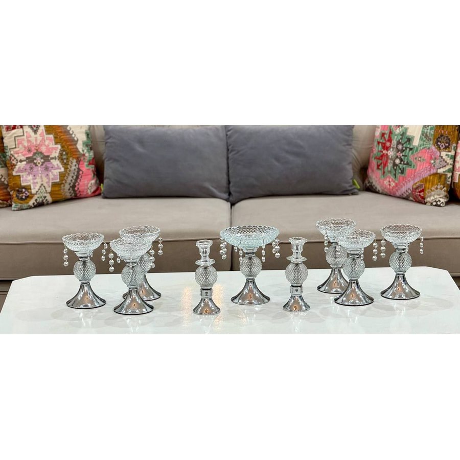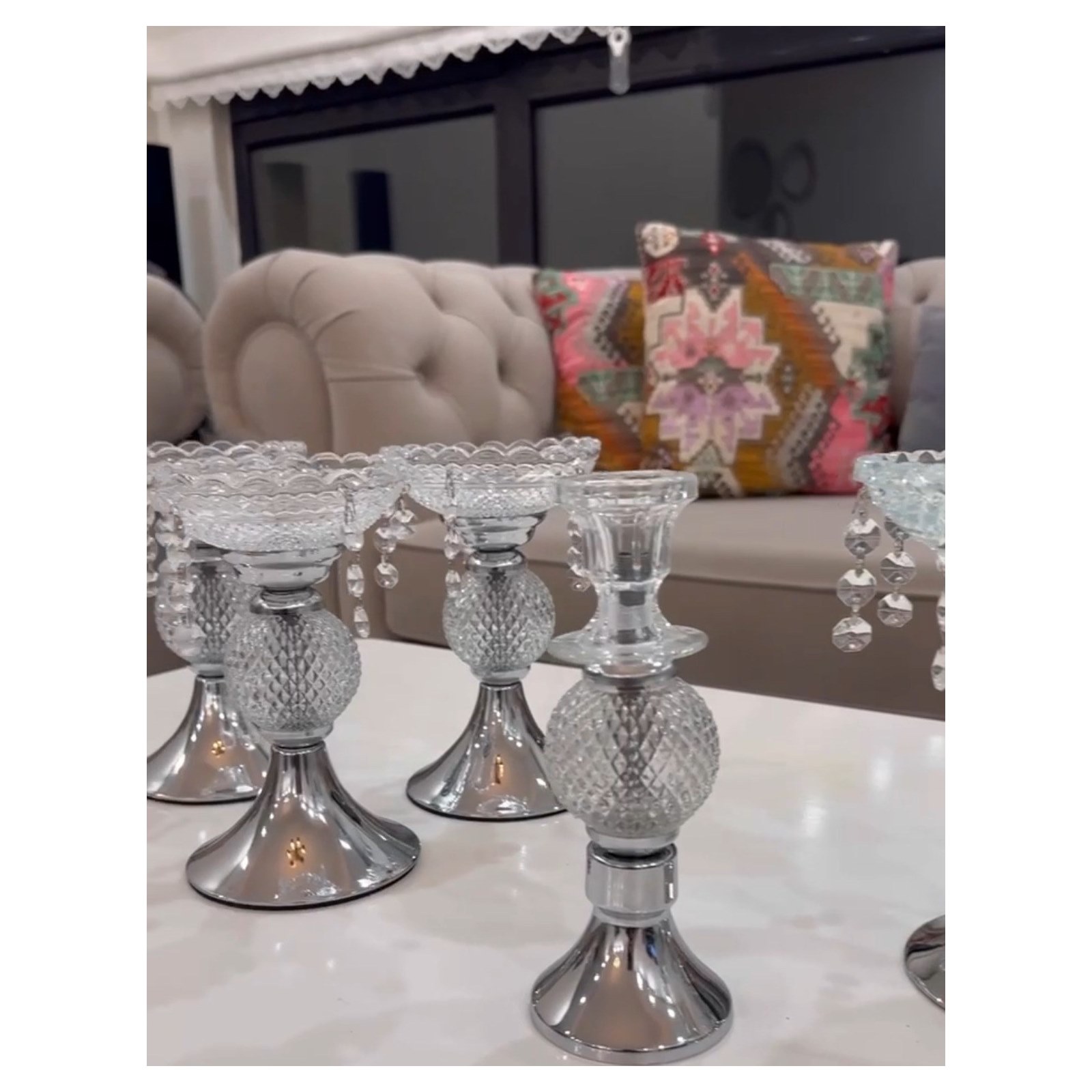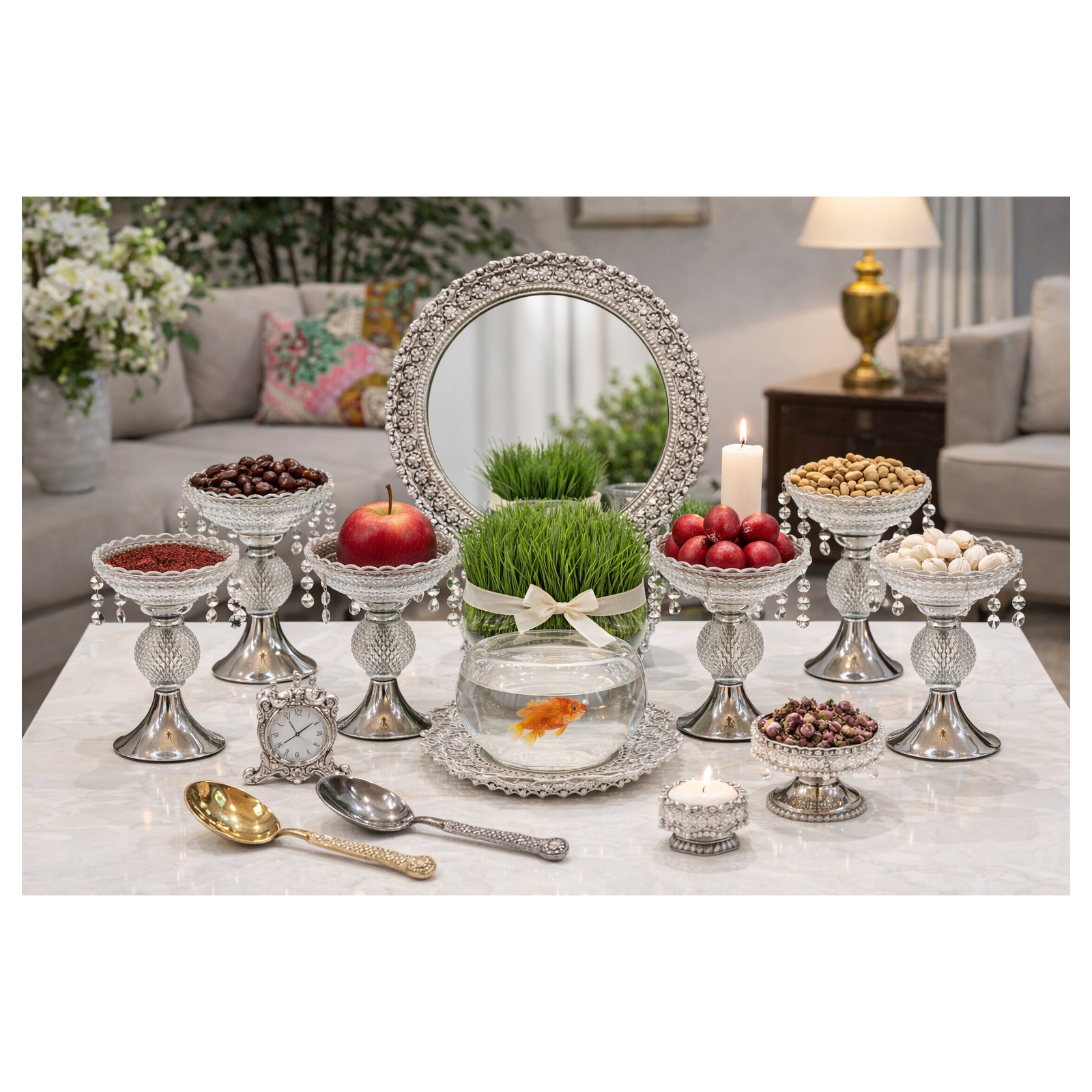 رنگ نقرهای ثابت و آبکاری باکیفیت این محصول، تضمین میکند که در طول زمان و با استفاده صحیح، دچار تغییر رنگ یا کدرشدگی نشود. شفافیت بالای کریستالها باعث انعکاس نور شده و زیبایی سفره هفتسین را چندین برابر میکند.