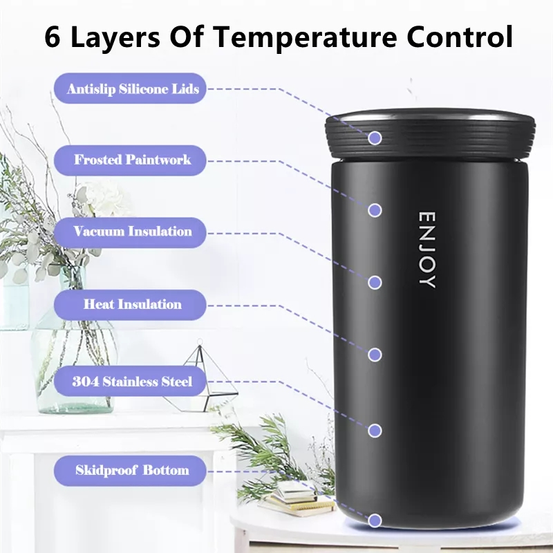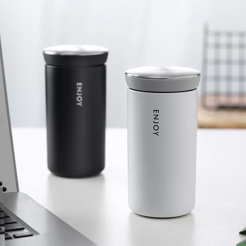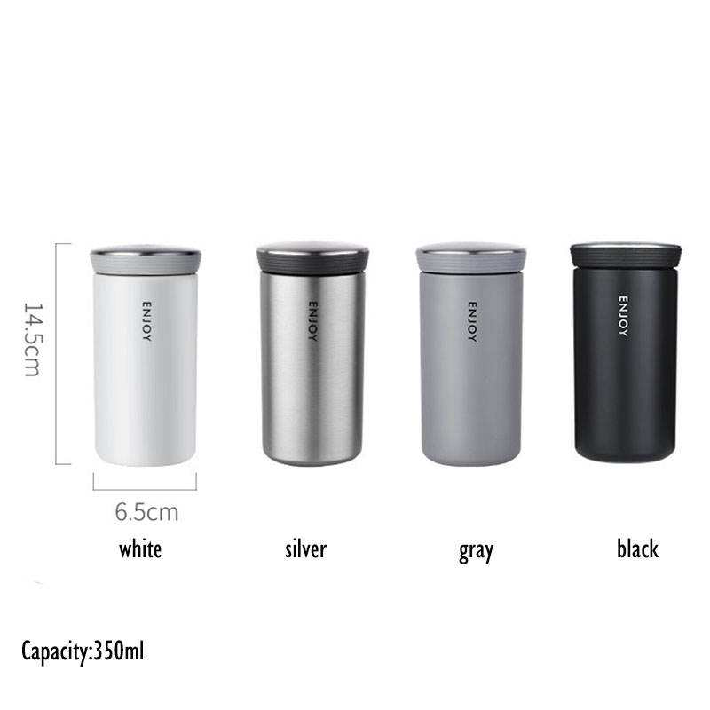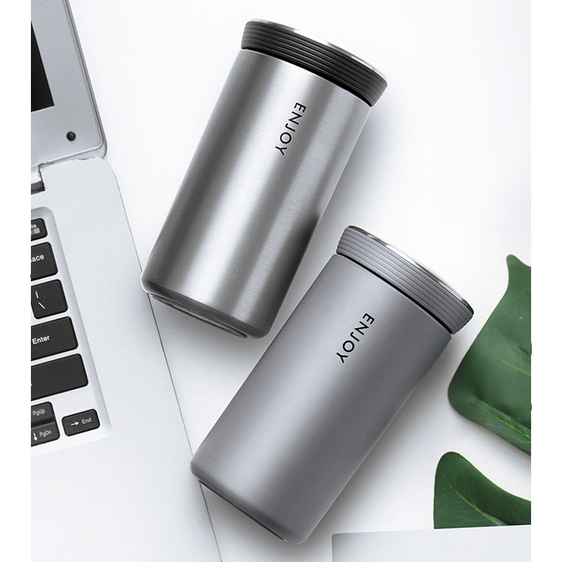 ماگ سفری مدل Enjoy با ظرفیت 0.35 لیتر، طراحی استیل و عملکرد ضد نشت. مناسب برای نگهداری نوشیدنیهای گرم و سرد در سفر یا محل کار.