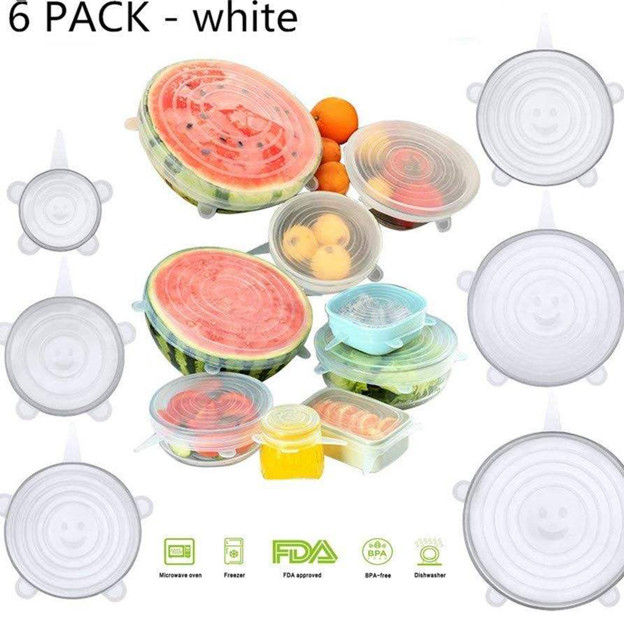 هر بسته شامل 6 عدد درپوش در سایزهای متنوع است. این موضوع باعث میشود برای ظروف کوچک مانند کاسه یا لیوان و همچنین ظروف بزرگتر مثل قابلمه یا کاسه سالاد بتوانید از آنها استفاده کنید. قابلیت شستوشو با دست و ماشین ظرفشویی هم باعث شده استفاده روزمره از این محصول بسیار راحت باشد.