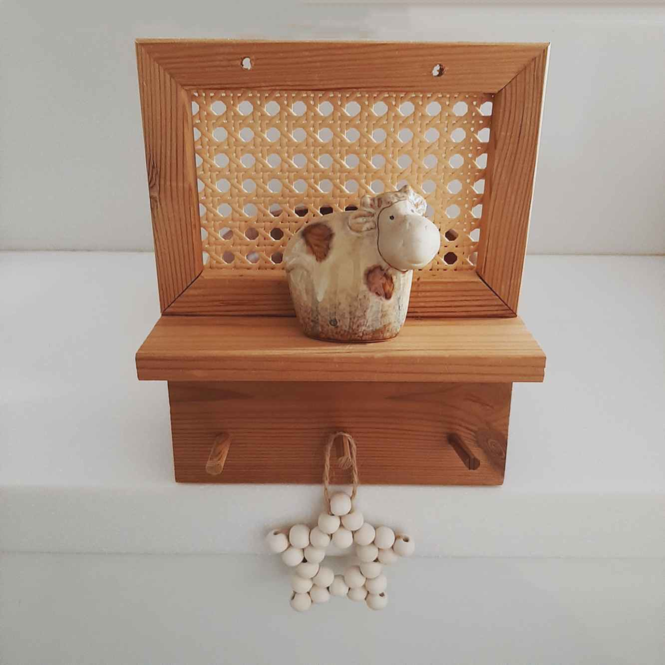 طراحی حصیری زیبا همراه با شلف و قلاب آویز |