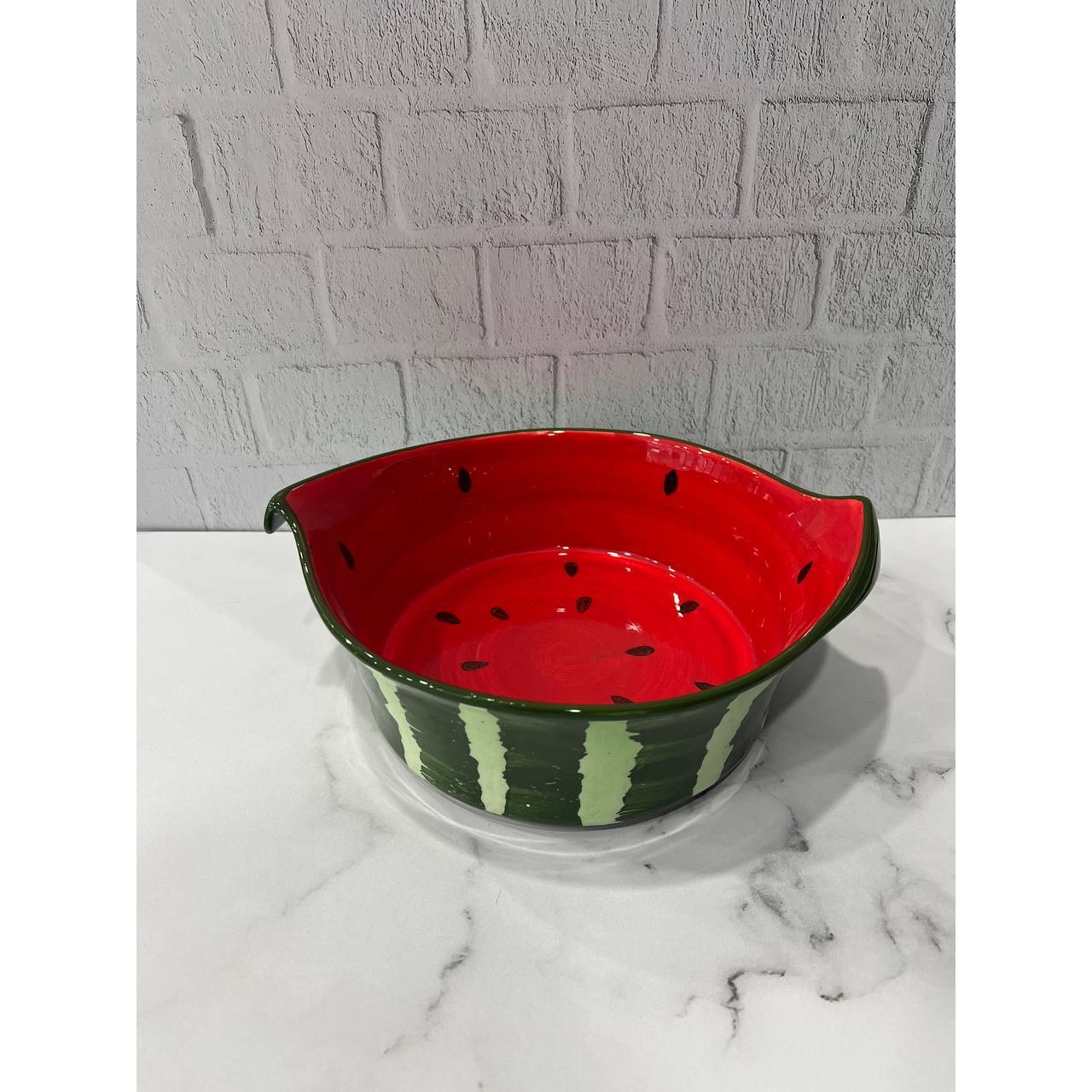 کاسه دستهدار بزرگ طرح هندوانهای یکی از محبوبترین و جذابترین ظروف فانتزی آشپزخانه است که با طراحی خاص و رنگبندی شاد، جلوهای زیبا به میز پذیرایی شما میدهد.