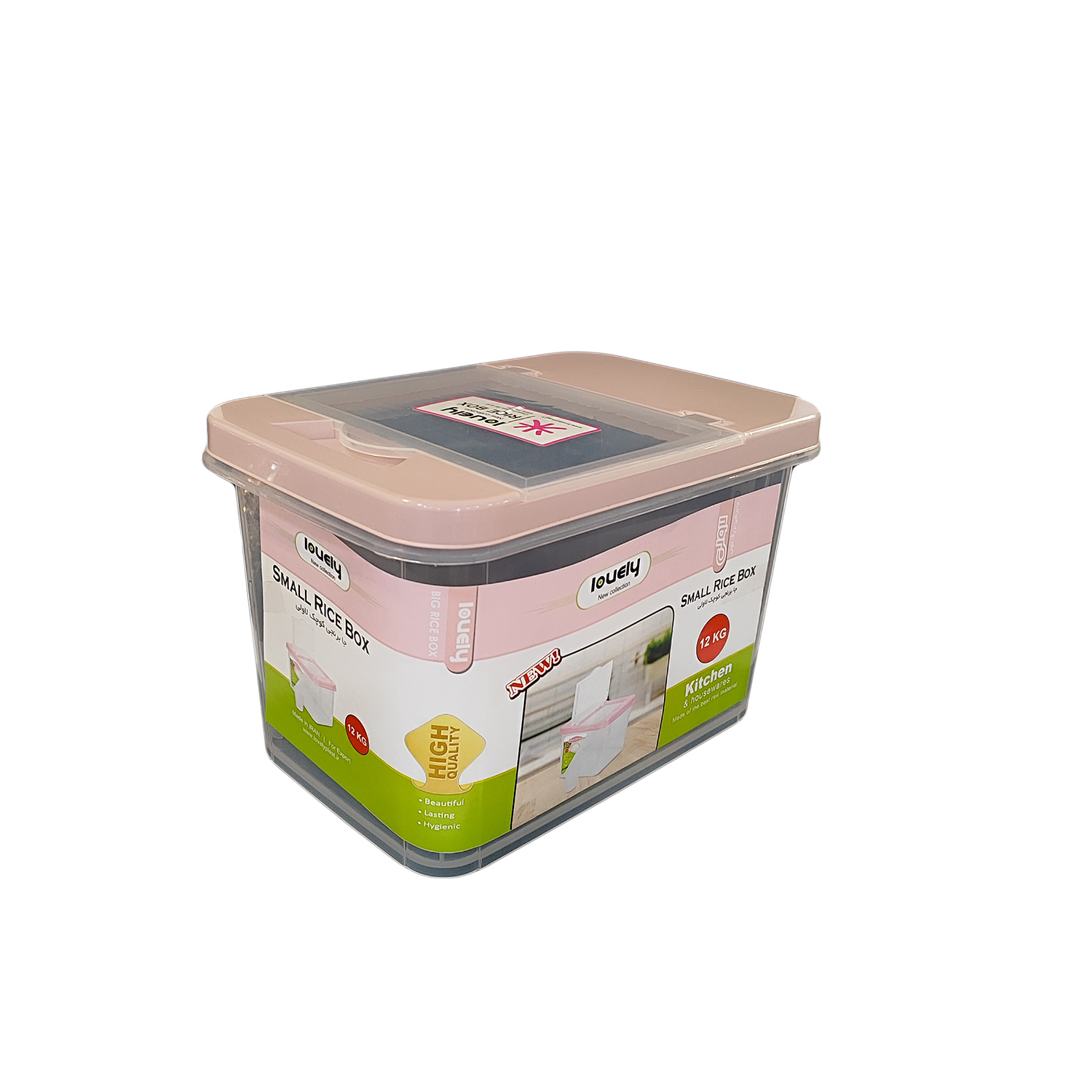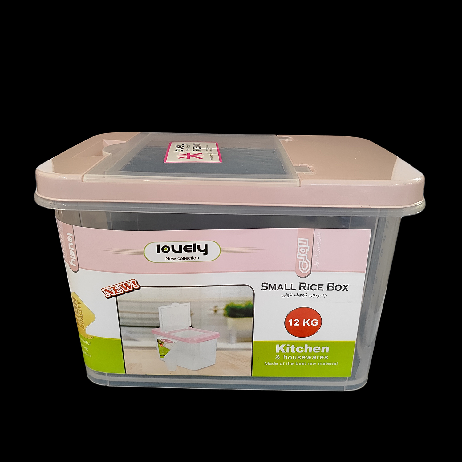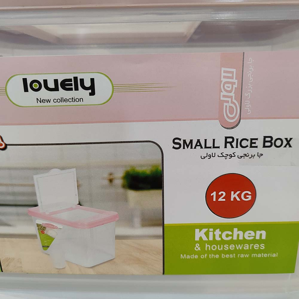 ظرف برنج لاولی مدل یاس با گنجایش 12 کیلوگرم، ساختهشده از پلاستیک مقاوم و با طراحی زیبا، مناسب برای نگهداری برنج و سایر غلات در آشپزخانه.
