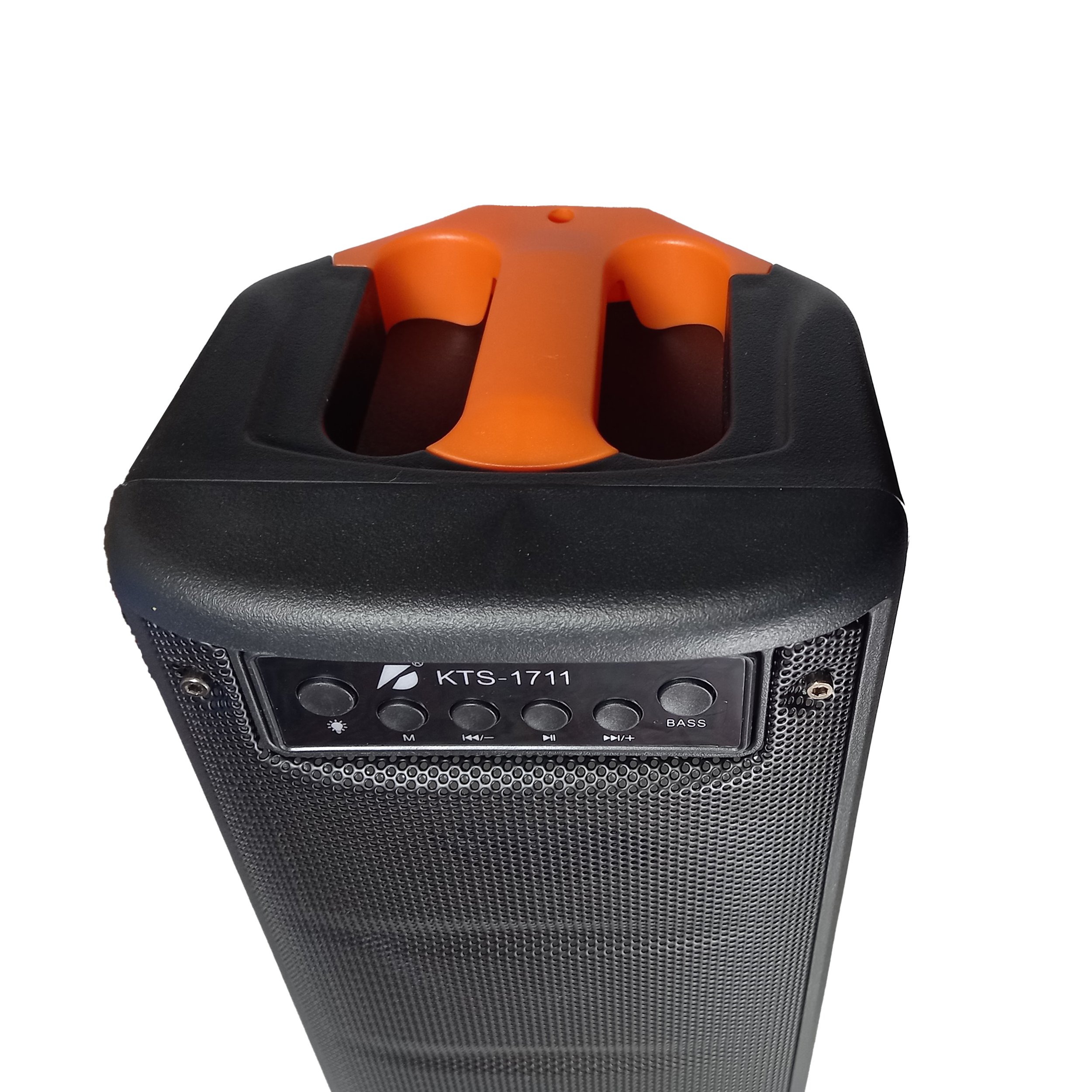 اسپیکر KTS-1711 با ابعاد ۱۲۰x۱۴۰x۳۰۰ میلیمتر و وزن ۱۲۰۰ گرم، به راحتی قابل حمل است. طراحی مناسب این اسپیکر باعث میشود که بتوانید آن را به راحتی حمل کنید. ابعاد بزرگ این اسپیکر به آن اجازه میدهد که صدای بلندی را تولید کند، اما همچنان به اندازهای کوچک است که به راحتی در هر مکانی جا بگیرد.