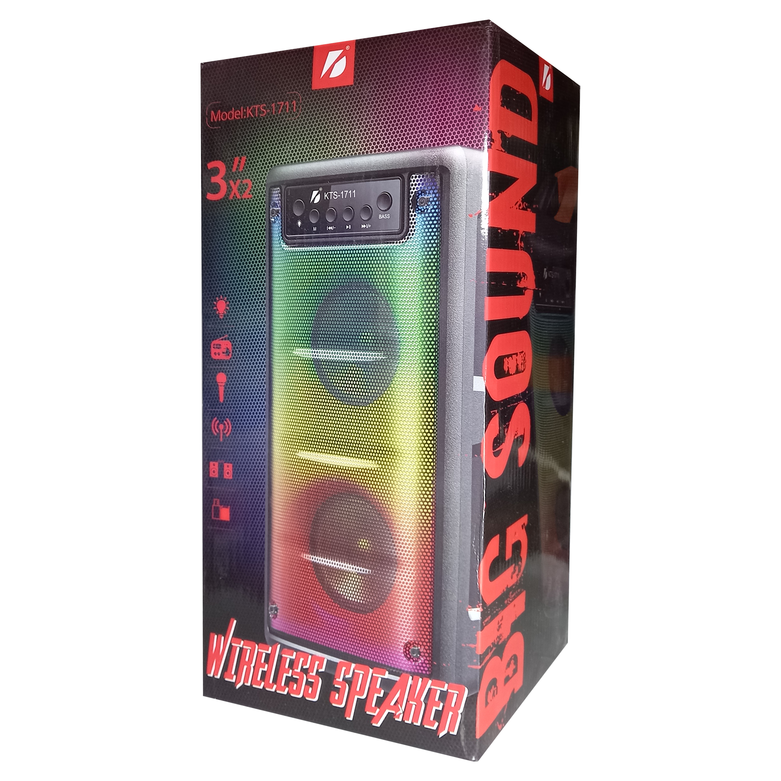 اسپیکر بلوتوثی قابل حمل مدل KTS-1711 با طراحی مدرن و رقص نور RGB، صدایی قدرتمند و شفاف ارائه میدهد. مناسب برای مهمانیها، سفر و استفاده روزمره.