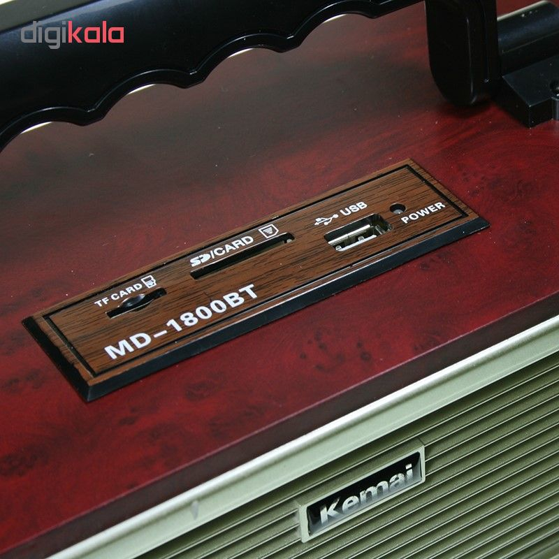 رادیو کیمای MD-1800BT یک رادیوی شارژی بلوتوثی با طراحی کلاسیک و امکانات مدرن است. این رادیو قابل حمل دارای بلوتوث، USB، کارت حافظه و AUX بوده و صدای پرقدرتی ارائه میدهد.