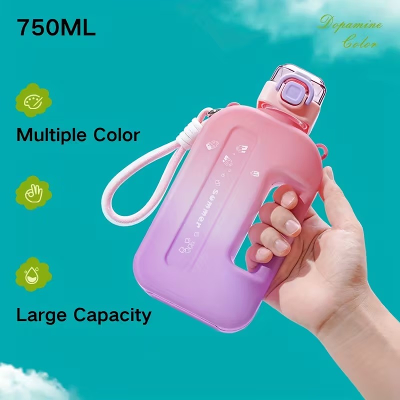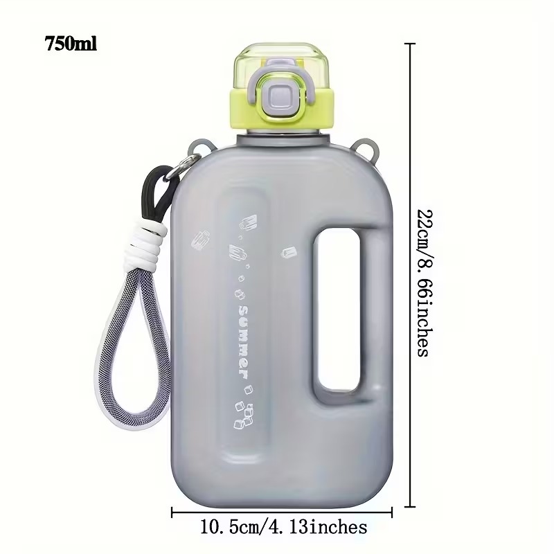 این قمقمه با ظرفیت ۷۵۰ میلیلیتر، جنس پلاستیکی مقاوم و بدون BPA ساخته شده و کاملاً ایمن برای نوشیدنیهای روزانه است.