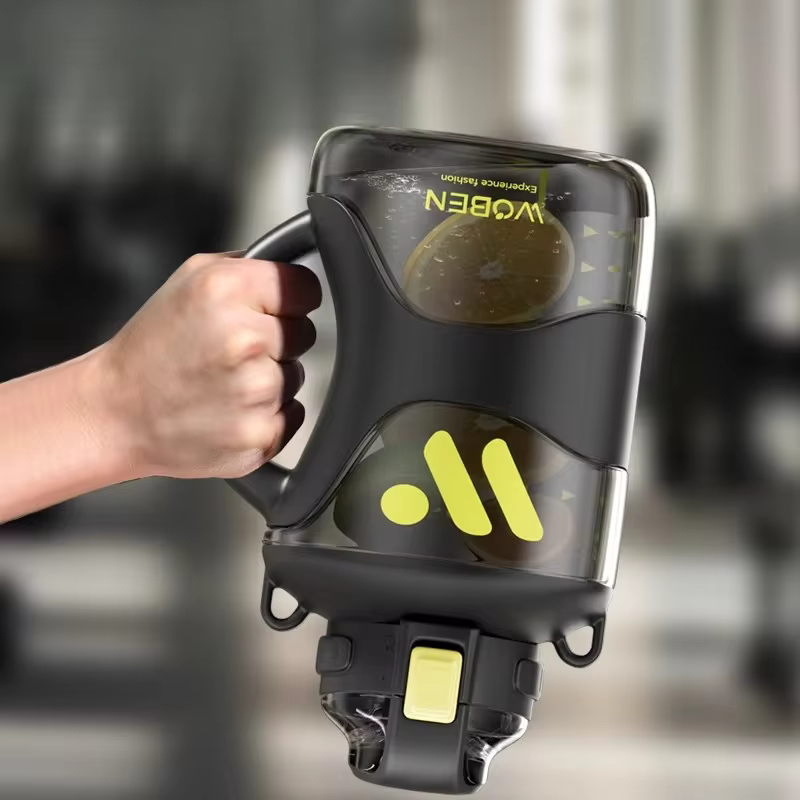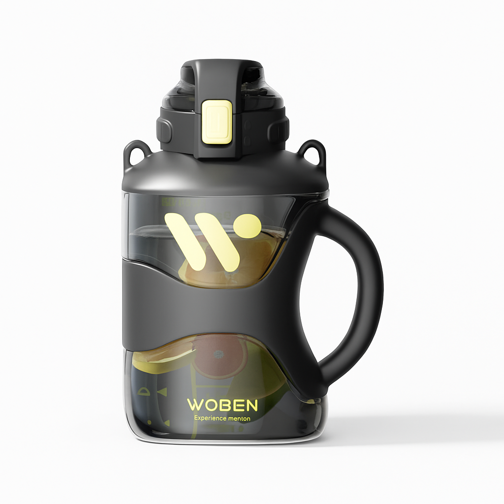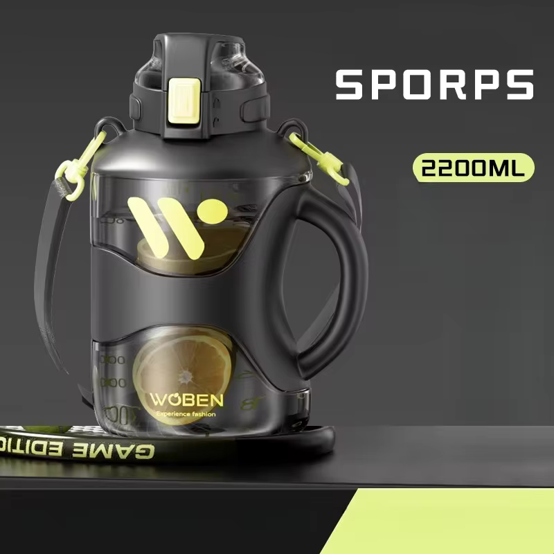 جاگ واتر WOBEN با گنجایش ۲.۲ لیتر، طراحی اسپرت و مقاوم، تحمل دمای تا ۱۰۰ درجه، مجهز به قفل ایمنی، بند حمل و دستهی ارگونومیک — مناسب برای ورزشکاران و استفاده روزانه.